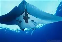 蝠鲼,又被称为魔鬼鱼与毯魟。属于软骨鱼纲、蝠鲼科,它包含两个属,前口蝠鲼属和蝠鲼属。体呈菱形,宽达6m余。体青褐色。口宽大。眼下侧位,能侧视和俯视。头侧有1对有胸鳍分化的头鳍,向前突出。背鳍小,…全部>>