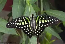 青带凤蝶Graphium sarpedon ,又名青凤蝶,是最普遍的中型凤蝶,飞行速度很快。青带凤蝶的翅膀中央有许多浅蓝色的斑点,很整齐地排列成一条直线。这些斑点由上而下逐渐变大,就像一条青色的带子。全部>>