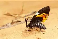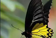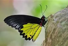 金裳凤蝶是凤蝶科、裳凤蝶属的动物。金裳凤蝶身体呈黑色,头、颈和胸侧有红毛,腹部有黑黄两色相间条纹,雄蝶前翅黑色,具黑天鹅绒光泽,各脉两侧灰白色,后翅金黄色,各室外缘有等腰三角形黑斑1枚,斑内侧有晕,…全部>>