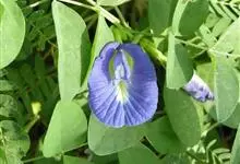 蝶豆是豆科蝶豆属植物。攀援状草质藤本。茎、小枝细弱,被脱落性贴伏短柔毛。叶长2.5-5厘米;托叶小,线形,长2-5毫米;叶柄长1.5-3厘米。花大,单朵腋生;苞片2,披针形。荚果长5-11厘米,…全部>>