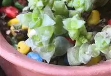宝绿中文学名弯叶日中花,拉丁文名Mesembryanthemum uncatum Salm-Dyck,又名舌叶花、佛手掌。叶片宽而厚实,呈长条形,似动物的舌头,别名也由此而来,…全部>>