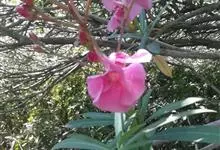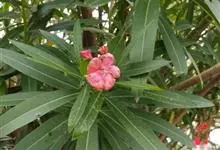 夹竹桃,又名红花夹竹桃、欧洲夹竹桃,是夹竹桃科夹竹桃属的一种常绿直立大灌木,枝条灰绿色,含水液。叶披针形,3叶轮生。聚伞花序顶生,花冠粉红至深红色,花冠漏斗状,有特殊香味。蓇葖果,圆柱形。种子长圆形,…全部>>