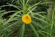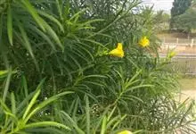 黄花夹竹桃K. Schum.),又名“酒杯花”“柳木子”“黄花状元竹”,是夹竹桃科,黄花夹竹桃属下的常绿乔木植物。高达5m,全株无毛,树皮棕褐色;叶互生,近革质,线形或线状披针形;花大,黄色,具香味,…全部>>