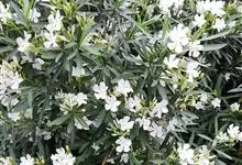 白花夹竹桃是夹竹桃科、夹竹桃属植物夹竹桃的栽培品种。常绿直立大灌木,枝条灰绿色;嫩枝条具稜,被微毛,老时毛脱落。叶3-4枚轮生,下枝为对生,叶面深绿,叶背浅绿色;侧脉纤细平行与中脉成直角;叶柄扁平,…全部>>
