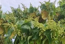 梧桐 W. Wight)是锦葵科、梧桐属落叶乔木。高可达16米,梧桐树皮青绿色,平滑;叶片心形,叶柄与叶片等长;圆锥花序顶生,花色淡黄;果为蓇葖果膜质,有柄;种子球形,有皱纹;花期6月。…全部>>