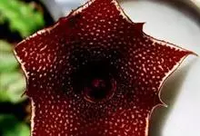 巨花犀角又称大豹皮花,是夹竹桃科犀角属的一种植物。茎粗,花大,边缘生长细毛。植株柱形多分枝呈丛生,柱形具4棱,棱缘具细小疣突。花大,五角星形黄色,并有横向棕褐色斑纹,似豹皮而得名。花期夏秋两季。…全部>>