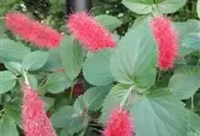 红穗铁苋菜:为大戟科、铁苋菜属植物,灌木,高0.5-3米。嫩枝被灰色短绒毛,毛逐渐脱落,小枝无毛。 花序色泽鲜艳,葇荑花序下垂,如狐狸尾状,雌花近卵形,长约0.8毫米,顶端急尖,具短毛;子房近球形,…全部>>