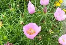 大花马齿苋:一年生草本,高10-30厘米。茎平卧或斜升,紫红色,多分枝,节上丛生毛。叶密集枝端,较下的叶不规则互生,叶片细圆柱形,无毛。花单生或数朵簇生枝端,直径2.5-4厘米,…全部>>