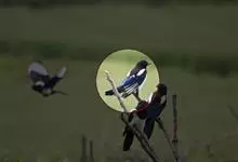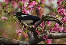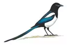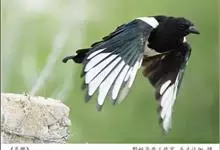喜鹊:是鸦科、鹊属的一种鸟类。共有11个亚种。体长40-50厘米,雌雄羽色相似,头、颈、背至尾均为黑色,并自前往后分别呈现紫色、绿蓝色、绿色等光泽,双翅黑色而在翼肩有一大形白斑,尾远较翅长,呈楔形,…全部>>