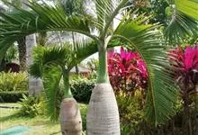 酒瓶椰 H. E. Moore)是棕榈科椰子属植物,单干,树干短,肥似酒瓶,树高可达3米以上,胸径达38-60厘米。羽状复叶,叶长1.8-2.2米,小叶披针形,中脉和侧脉凸起。叶柄淡红色,没有黄色的…全部>>