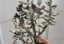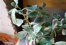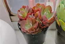 唐印为景天科伽蓝菜属的多年生肉质草本植物。植株中型,株高50厘米,宽20厘米,多分枝;叶片肉质,对生,卵形,全缘,先端钝圆,叶片淡绿色至灰绿色,表面被有厚厚的白粉,光照充足时,叶缘呈红色;圆锥花序,…全部>>
