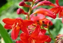 雄黄兰是鸢尾科雄黄兰属多年生草本植物。雄黄兰具扁球径,叶多基生,剑形;花茎由多花给成疏散的穗状花序,花冠漏斗状,深橙红色;蒴果。 花期7-8月,果期8-10月 。雄黄兰因橘红色的花与雄黄颜色相似而得名。…全部>>