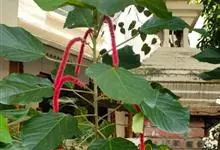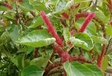 红穗铁苋菜:为大戟科、铁苋菜属植物,灌木,高0.5-3米。嫩枝被灰色短绒毛,毛逐渐脱落,小枝无毛。 花序色泽鲜艳,葇荑花序下垂,如狐狸尾状,雌花近卵形,长约0.8毫米,顶端急尖,具短毛;子房近球形,…全部>>