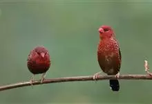红梅花雀小型鸟类,体长9-10厘米。雄鸟通体朱红色,背、肩、胸等满布白色小斑点,两翅和尾黑褐色均具白色端斑,嘴红色,脚蜡黄色。雌鸟上体淡褐色或赭褐色,翅上中覆羽、大覆羽和内侧飞羽末端具白色斑点,…全部>>