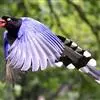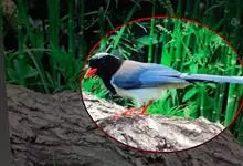 红嘴蓝鹊,别名山鹊、长尾鹊,是鸦科蓝鹊属的一种观赏性较强的大型鸣禽。该物种为体长54~65cm,头、颈、喉和胸黑色,头顶至后颈有一块白色至淡蓝白色或紫灰色块斑,其余上体紫蓝灰色或淡蓝灰褐色。尾长呈凸状,…全部>>