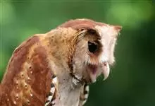 栗鸮:是鸟纲、草鸮科的猫头鹰。体长约29厘米,体重311-360克。是一种中等体型的红褐色鸮。其心形脸庞及时而竖起的“耳朵”与仓鸮甚似。上体红褐而具黑白点斑,下体皮黄偏粉具黑点,脸近粉色。虹膜深褐色,…全部>>