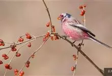 藏朱雀:全长约17-18厘米。雄鸟头部深红色具光辉,喉部暗红色具白色点斑;背部灰白色,各羽具玫瑰红色羽端,形成许多斑纹;腰部淡玫瑰红色;翅暗褐色,沾灰白,羽端沾玫瑰红或灰白色;尾暗棕色,端缘玫瑰红色…全部>>
