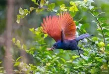褐翅鸦鹃,是鹃形目鸦鹃科鸦鹃属的鸟类。褐翅鸦鹃的身体为黑色;头颈和胸带蓝紫色金属光泽并具黑亮的羽干纹,下胸至腹部泛金属绿光泽;两翼和肩部为棕栗色,外侧飞羽具暗色羽端,尾羽闪铜绿色光泽;虹膜赤红色,…全部>>