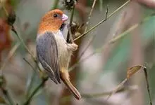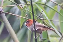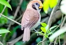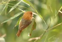 褐翅鸦雀是莺科、鸦雀属小型鸟类,体长11-13厘米。嘴短而粗厚、似鹦鹉嘴,头、后颈和颈侧栗红色。上体橄榄褐色,翅缘褐色。颏、喉、胸葡萄红色具细的栗红色纵纹。虹膜棕红或深红色,嘴乳黄或角黄色,…全部>>