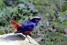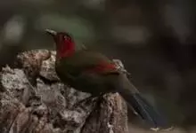 红头咬鹃: 体大,体长约33厘米,体重75-110克。头、颈暗绯红色;背、肩锈褐色。两翅黑色,翅上覆羽和内侧飞羽密被白色细虫蠹斑纹,初级飞羽黑色,外侧具白色羽缘;腰和尾上覆羽较多锈色。中央尾羽深栗色,…全部>>