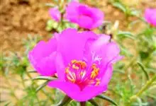 大花马齿苋:一年生草本,高10-30厘米。茎平卧或斜升,紫红色,多分枝,节上丛生毛。叶密集枝端,较下的叶不规则互生,叶片细圆柱形,无毛。花单生或数朵簇生枝端,直径2.5-4厘米,…全部>>