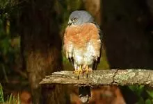 赤腹鹰是小型猛禽,翅膀尖而长,因外形像鸽子,所以也叫鸽子鹰。体长27-36厘米,体重108-132克。头部至背部为蓝灰色,翅膀和尾羽灰褐色。栖息于山地森林和林缘地带,…全部>>