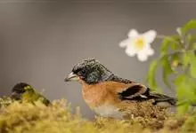 普通朱雀是雀形目雀科朱雀属鸟类,又名红朱雀、马料、青麻料。雄鸟上体红色,下体淡红色;头部、喉部、胸部及腰部亮红色;背部褐色染红色;两翼及尾黑褐色,羽缘染红色。雌鸟上体橄榄褐色,下体近白色,…全部>>