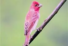 酒红朱雀小型鸟类,体长13~15厘米。雄鸟通体深红色,头部深朱红或棕红色,下背和腰玫瑰红色,眉纹粉红色而具丝绢光泽。两翅和尾黑褐或灰褐色、具暗红色狭缘,内侧两枚三级飞羽具淡粉红色先端。…全部>>