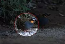 褐胸山鹧鸪:雄鸟体长22厘米,体重310克;雌鸟体长23厘米,体重220-275克。前额皮黄白色,头顶橄榄褐色。眼部的裸皮鲜红色,有一条宽阔的皮黄白色眉纹一直延伸到颈的侧部。上体亮橄榄褐色,具黑色横斑。…全部>>