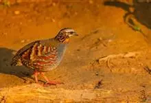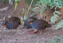 褐胸山鹧鸪:雄鸟体长22厘米,体重310克;雌鸟体长23厘米,体重220-275克。前额皮黄白色,头顶橄榄褐色。眼部的裸皮鲜红色,有一条宽阔的皮黄白色眉纹一直延伸到颈的侧部。上体亮橄榄褐色,具黑色横斑。…全部>>