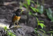 黑胸鸫属中型鸟类,体长20-30厘米。雄鸟整个头、颈、胸黑色,其余上体暗灰色,下体橙棕色,极为醒目。嘴、脚蜡黄色。雌鸟上体橄榄褐色,颏、喉白色,上胸橄榄褐色具黑色斑点,其余与雄鸟相似。…全部>>