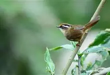 褐胁雀鹛,是莺科、雀鹛属的鸟类。褐胁雀鹛是小型鸟类,体长13-15厘米。头顶棕褐色,黑色侧冠纹和宽阔的白色眉纹,眼先黑色。上体包括两翅和尾橄榄褐色。颏、喉、胸、腹白色,腹和胸沾皮黄色,两胁橄榄褐色,…全部>>