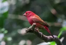 普通朱雀是雀形目雀科朱雀属鸟类,又名红朱雀、马料、青麻料。雄鸟上体红色,下体淡红色;头部、喉部、胸部及腰部亮红色;背部褐色染红色;两翼及尾黑褐色,羽缘染红色。雌鸟上体橄榄褐色,下体近白色,…全部>>