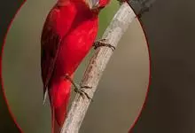 血雀雀科朱雀属鸟类,体重36-49克;体长155-182毫米。雄鸟除眼先、翼与尾为黑色外,通体为鲜红色;嘴鲜黄;雌鸟暗橄榄绿色,羽端较淡或带黄色;腰鲜黄;嘴较暗。虹膜褐色;嘴黄色;腿和脚褐色。…全部>>