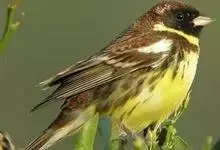 黄胸鹀是雀形目雀科鹀属鸟类,又名黄胆、禾花雀。雄鸟额、头顶、颏、喉黑色;头顶和上体栗色或栗红色;尾黑褐色,外侧两对尾羽具长的楔状白班;两翅黑褐色,翅上具一窄的白色横带和一宽的白色翅斑;下体鲜黄色,…全部>>
