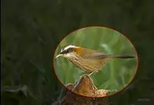 黄喉雀鹛是雀眉科、拟希鹛属小型鸟类,体长11-12厘米。头顶浅黄色具黑色鳞状斑,头顶两侧各有一道黑色侧冠纹,眉纹浅黄色、长而宽阔。上体灰绿色,两翅和尾褐色而具浅黄色窄缘。下体淡黄色。特征明显,…全部>>
