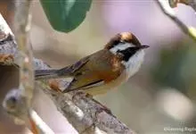 棕头雀鹛为鸦雀科,褐鹛属小型鸟类,体长10-13厘米。头顶栗褐色具黑色侧冠纹。上体茶黄色,飞羽外侧表面灰白色,内侧表面红棕色,内外二色之间夹有黑色。颏、喉白色具不明显的暗色纵纹,胸沾葡萄灰色,…全部>>