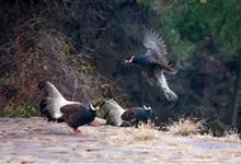 褐马鸡:是雉科、马鸡属鸟类。是中国特产珍稀鸟类,体高约60厘米,体长1-1.2米,体重5千克,全身呈浓褐色,头和颈为灰黑色,头顶有似冠状的绒黑短羽,脸和两颊裸露无羽,呈艳红色,尾巴高高竖起。翅短,…全部>>