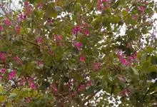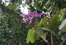羊蹄甲,别名紫花羊蹄甲、玲甲花,是豆科羊蹄甲属的一种常绿乔木或灌木。树冠开展,枝桠低垂;树皮灰色至暗褐色,近光滑。枝幼时微被灰色短柔毛,后毛脱落;叶硬纸质,近圆形,基部浅心形,…全部>>