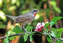 红点颏:是鸟纲、鹟科的鸣禽。又名西伯利亚歌鸲。体长14-17厘米,体重16-27克。雄鸟头部、上体主要为橄榄褐色。眉纹白色。颏部、喉部红色,周围有黑色狭纹。胸部灰色,腹部白色。雌鸟颏部、喉部不呈赤红色,…全部>>