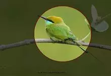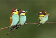 栗喉蜂虎是蜂虎科蜂虎属的鸟类。有热带鸟类羽毛艳丽的特征:喉部是栗红色的,黑色的过眼纹,翅膀和背部是绿色的,尾翼是蓝色的,飞行时翅膀下面的羽毛是橙黄色的,在阳光的照射下,它们全身闪烁着金属般的艳丽光泽,…全部>>