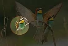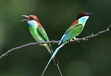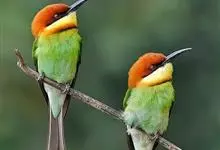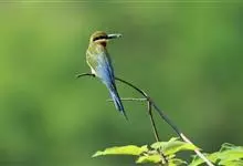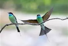 蓝颊蜂虎:是蜂虎科、蜂虎属的鸟类,共有2个亚种。体长27-33厘米,翼展46-49厘米,体重38-50克。嘴形细长而下弯,先端尖,…全部>>
