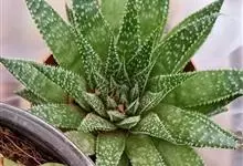 条纹十二卷 Haw.)是芦荟科十二卷属植物,为多年生肉质草本植物。植株高度10-15厘米,其呈莲座状生长;叶片紧密轮生在茎轴上,柔软多汁,呈长三角状披针形,极肥厚;叶面光滑、扁平,色深绿;叶背突起,…全部>>