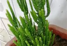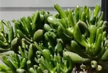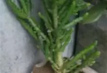 筒叶花月,是景天科青锁龙属的多年生草本植物。植株多分株,灌木状,茎较粗壮,圆柱形,表皮灰褐色;叶片肉质,互生,呈圆筒状,簇生于茎或分枝顶端,叶端呈斜截形,截面为椭圆形;花呈星状,淡白色;花期秋季。…全部>>