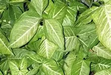 合果芋是天南星科,合果芋属多年生常绿草本植物,合果芋的茎节具气生根,攀附他物生长。叶片呈两型性,箭形或戟形;叶基裂片两侧常着生小型耳状叶片。佛焰苞浅绿或黄色。合果芋一般不易开花。…全部>>