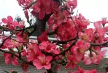 贴梗海棠Nakai)是蔷薇科、木瓜海棠属植物。落叶灌木,高达2米,枝条直立开展,有刺。叶片卵形至椭圆形,稀长椭圆形,长3-9厘米,宽1.5-5厘米。花先叶开放,3-5朵簇生于二年生老枝上。…全部>>