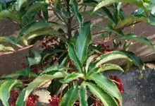 朱砂根是报春花科紫金牛属植物,又名铁凉伞、红铜盘、百两金、大罗伞、开喉箭等,为常绿小灌木,高1~2米,茎粗壮,无毛,除侧生特殊花枝外,无分枝,叶片革质或坚纸质,椭圆形、椭圆状披针形至倒披针形,…全部>>
