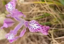 粗根鸢尾是鸢尾科鸢尾属的多年生草本植物。植株基部有大量老叶残留纤维;根尖端渐细,有皱缩横纹;叶为有光泽的深绿色;花茎不伸出地面,花蓝紫或红紫色,外花被裂片窄倒卵形,有紫褐及白色斑纹,…全部>>
