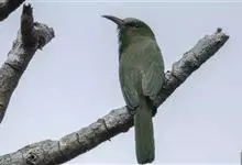 蓝须夜蜂虎是佛法僧目、蜂虎科的鸟类,体长约30厘米,是绿色林栖型蜂虎,蓝色的胸羽蓬松,嘴厚重而下弯。成鸟顶冠淡蓝,腹部棕黄带绿色纵纹。尾羽腹面黄褐。亚成鸟全身绿色。喉、胸部中央的羽甚长和亮色;该物种…全部>>