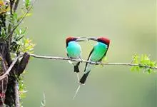 蓝颊蜂虎:是蜂虎科、蜂虎属的鸟类,共有2个亚种。体长27-33厘米,翼展46-49厘米,体重38-50克。嘴形细长而下弯,先端尖,…全部>>